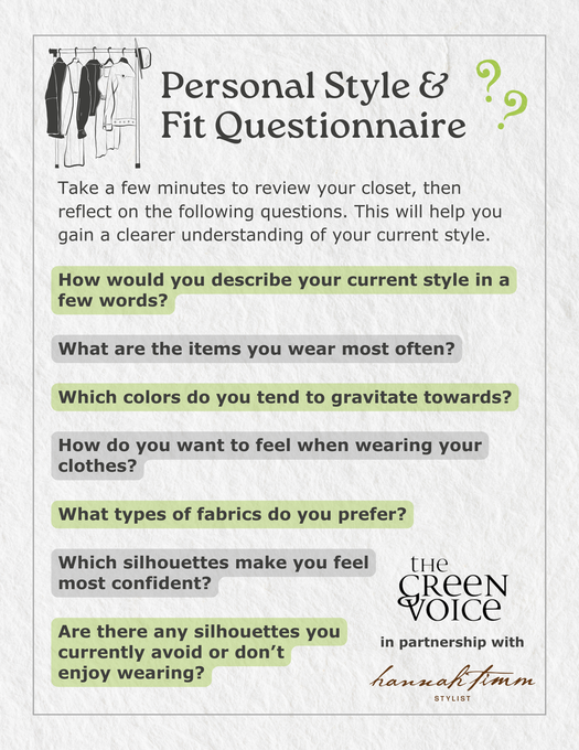 Personal Style & Fit Questionnaire developed by Hannah Timm Stylist in partnership with The Green Voice.