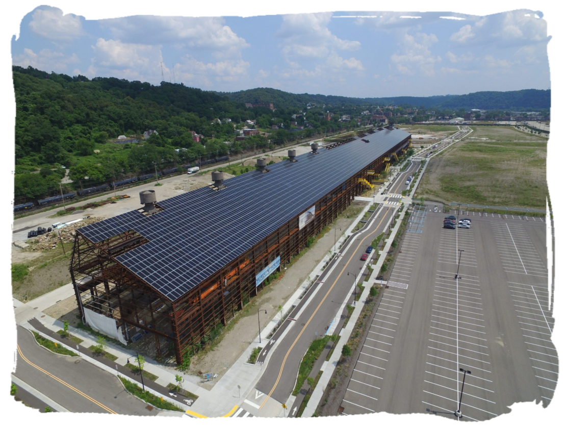 But now, Hazelwood Green, which is being converted into a mixed-use riverfront space to house tech companies, nonprofits, and more, has the largest solar array of its kind on the country installed on its Mill 19 building.